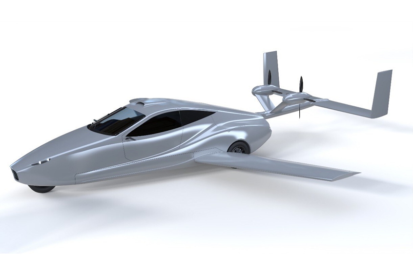 Three wheeled, two seat, side-by-side, driving, road legal, flying vehicle with hinged wings. Maximum driving speed of 125 mph and an estimated maximum flight speed of 190 mph, with hybrid-electric system designated the Skybrid system.