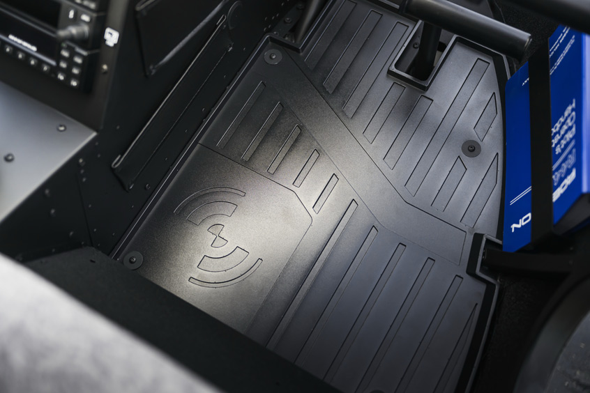 - Removable, Rubberized Floor Mats: Standard carpeting is replaced with lightweight, Robinson-branded rubberized floor mats. Engineered with positive retention, these mats are fully removable and washable, to spray away mud and debris.