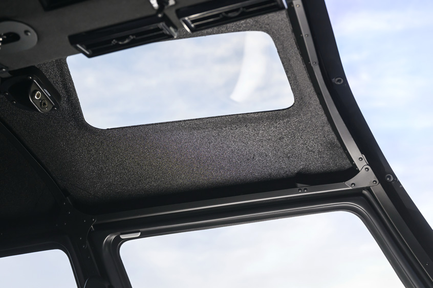 - TitanPlate Headliner: The traditional fabric headliner is replaced with TitanPlate, a durable, abrasion-resistant, textured coating designed to withstand the harshest conditions and doors-off missions