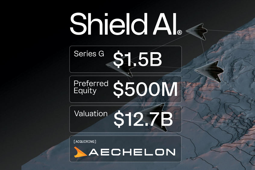 Shield AI today announced it is raising $1.5 billion in Series G funding at a $12.7 billion post-money valuation and $500 million in fixed-return preferred equity financing. The Series G is led by Advent International and co-led by the Strategic Investment Group of JPMorganChase’s Security and Resiliency Initiative, with participation from existing investors Snowpoint Ventures, InnovationX, Riot Ventures, Disruptive, Apandion, and others. Funds managed by Blackstone are investing $500 million of preferred equity financing, as well as committing an additional $250 million delayed draw facility to support future growth. Advent’s Chairman David Mussafer will join Shield AI’s Board of Directors and JPMorganChase’s Todd Combs will join as a Board Observer.