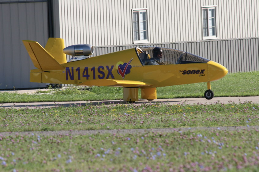 "It was great - flies like an airplane," Carlton said after the flight. "The faster I went, the better it felt." Carlton was selected to fly the aircraft based on his vast experience pioneering light jet aircraft. Bob Carlton is best known for his air show performances with the Super Salto jet sailplane, and is the developer of the Bonus Jet two-seat glider. The engines used on Carlton's aircraft are the same as that used on the SubSonex: The PBS TJ-100.