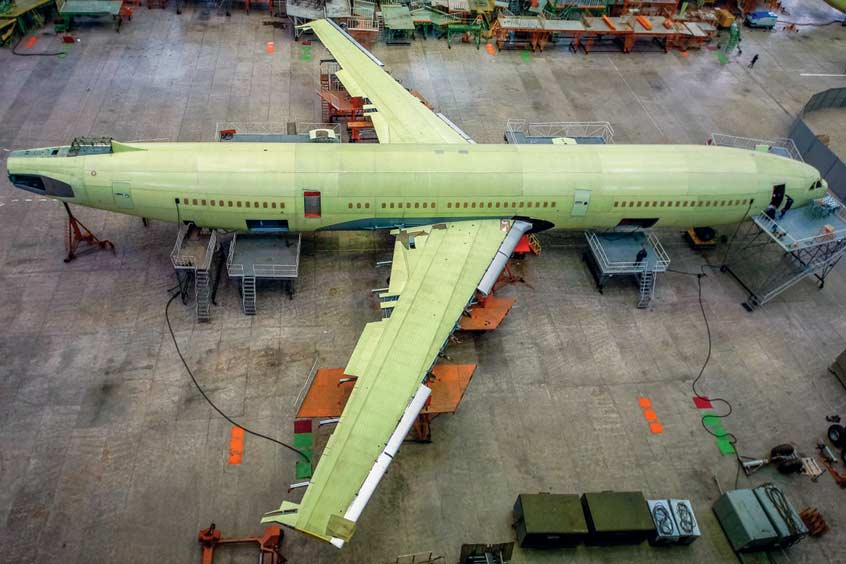 The new aircraft is developed as a modification of the mass-produced IL-96-300 with a fuselage 9.35m longer than its predecessor with the additions for the original type certificate. The newly built is to maintain high reliability specifications as its famous forerunner. Work on the programme is on schedule.