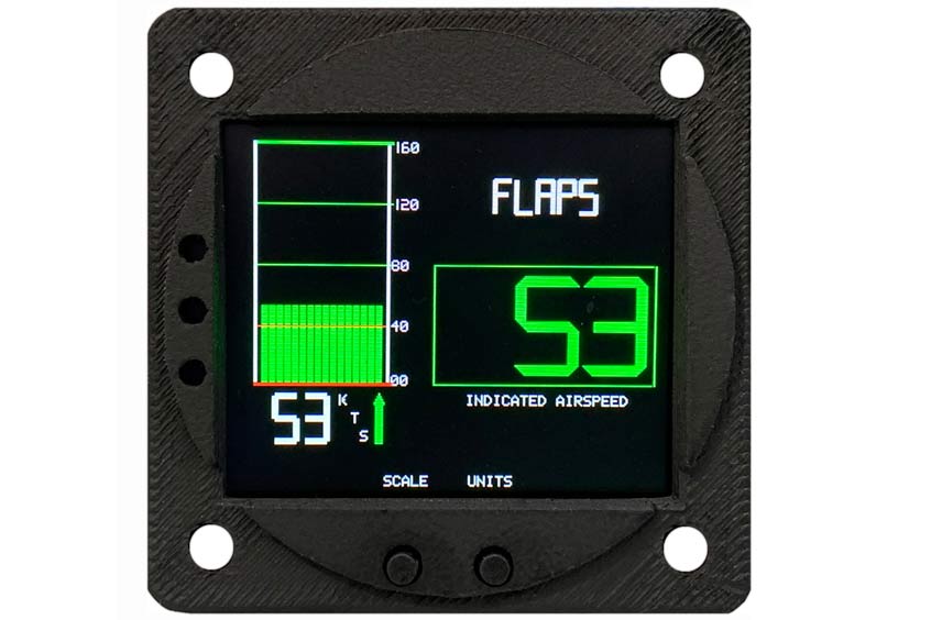 Users may calibrate the exact ranges to their aircraft specs, including green, yellow, redline and flap speed. The unit provides additional notification for permissible flap extension, along with an overspeed indicator.