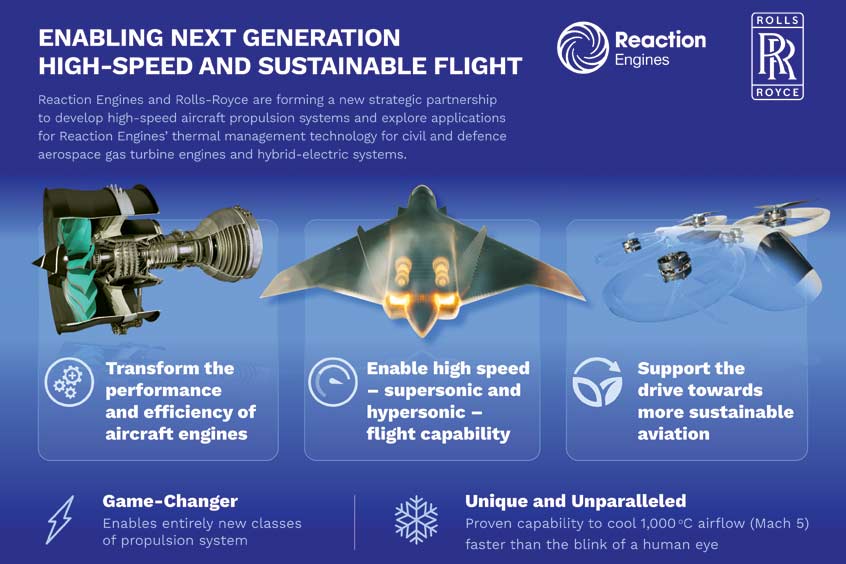 Reaction Engines Ltd and Rolls-Royce plc announced a new strategic partnership agreement to develop high-speed aircraft propulsion systems and explore applications for Reaction Engines' thermal management technology within civil and defence aerospace gas turbine engines and hybrid-electric systems.