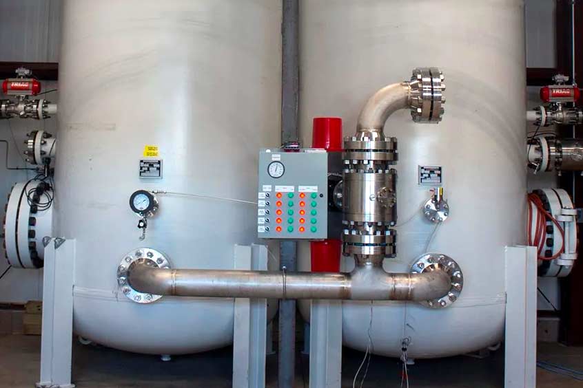The acoustic chambers support noise ratings of less than 40 decibels for frequencies ranging from 8 to 16,000 Hz. Leveraging multiple nitrogen tanks networked throughout the facility, blow down testing is accomplished via 1,989+ ft3 of nitrogen storage at 6,000 psi and 1,600+ ft3 of nitrogen storage at 800 psi. Maximum pressure and flow ranges from 650 PSIG (up to 28,000 SCFM) to 6,300 PSIG (up to 270,000 SCFM). Note that structure-borne testing is currently able to reach the maximum pressure and flow limits whereas airborne testing currently reaches 800 psi (up to 28,000 SCFM) and is expected to reach maximum limits by the end of the year. Marotta is also in the process of installing additional tanks that will allow for longer test durations.