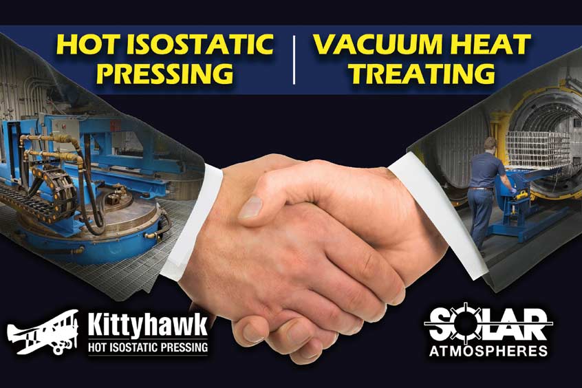 "The partnership between Solar Atmospheres and Kittyhawk is a natural fit as both companies are market leaders in their respective industries. This partnership allows the customer to take advantage of hot isostatic pressing and heat treat without having to look further. I am very excited about the future and more importantly providing our customers with two of the best options in the service industry," states Brandon Creason, President of Kittyhawk.
