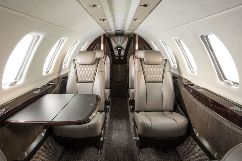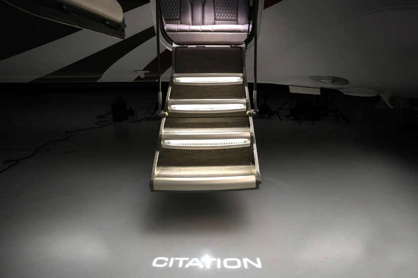 Along with the new cabin seating options, there is enhanced lighting in the pockets, on the sidewall and floor, and in the cupholders. This is the first Citation aircraft equipped with CoolView lavatory skylights to provide more natural lighting throughout the lavatory and aft cabin area. Operators can choose the jet's Premier Collection design option, which also offers a completely new lavatory vanity and sink.