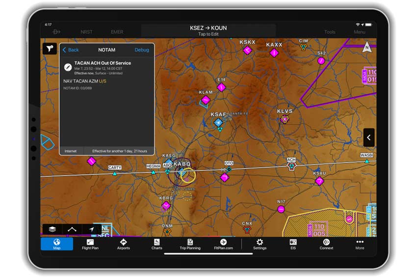 With this update, pilots can filter the NOTAMs overlay based upon the active flight plan to only include items that will be active during a particular flight. Using the departure date and time of an active flight plan, as well as the estimated time enroute (ETE) plus a three-hour margin, Garmin Pilot will display only the relevant NOTAMs for that flight on the map or widget view in split screen mode.
