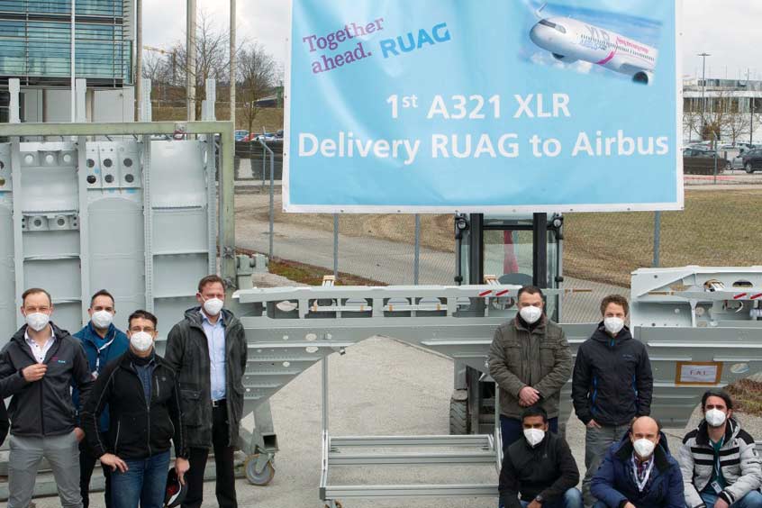 Airbus is pressing ahead with development of the A321XLR despite the current aviation crisis. The new compact long-haul jet from Airbus is expected to be able to cover distances of up to 4700 nautical miles (8700 kilometers). It is to be available to airlines on time by 2023. Under a Design & Build contract (development and production), RUAG Aerostructures is manufacturing the lower side shells with landing gear bay and the floor structures. In the Build to Print package (manufacturing to specification), RUAG Aerostructures produces the upper side shells of the aircraft fuselage, the rear fuselage and floor structures, the pressure bulk and the tailcone for the new long-haul jet of the A320 family.