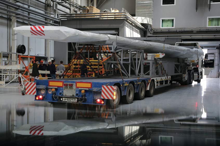 Wing panel 17,5 m long was delivered from Ulyanovsk to Irkutsk by road. Specialists of Irkut Corporation and AeroComposite have developed special equipment with a system of fasteners and sensors to prevent structural damage during transportation.