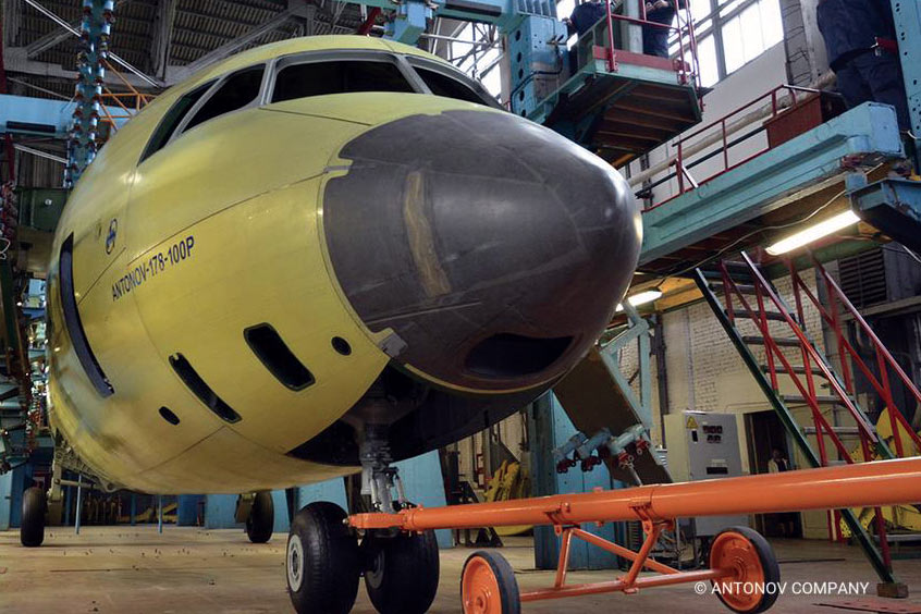 Nowadays, the wing, tail unit, systems and details for airframe of this AN-178 are constructed at Antonov's production facility. Completion of the airframe assembly is scheduled for the end of this year. Production of details and aggregates for the second and third airplanes is in progress.