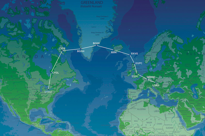 Diamond Aircraft test pilot, Thomas Wimmer, ferried the brand-new DA50 RG from Wiener Neustadt, Austria to London, Ontario, Canada via the North Atlantic route. This marks a historic milestone for this flagship Continental CD-300 powered aircraft.