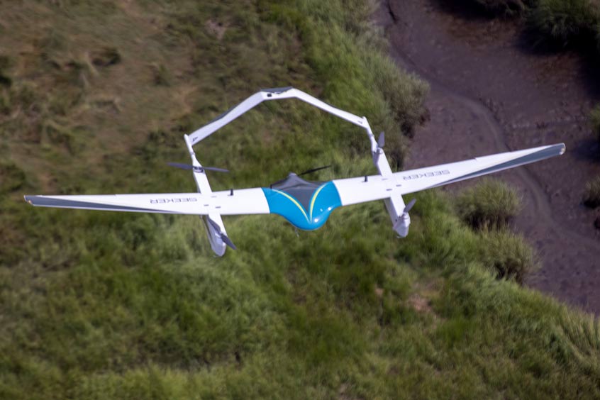 The SEEKER's large payload-carrying capability will be customisable with a variety of modular options, such as a 30x optical zoom EO/IR camera for inspection, a 120-megapixel high-resolution camera for terrain mapping and 3D modeling, a six-band multispectral camera designed for precision agriculture analysis, a LiDAR system, a laser methane sensor, or a corona discharge sensor, most of which will feature the ability to stream data to the operator in near-real time.