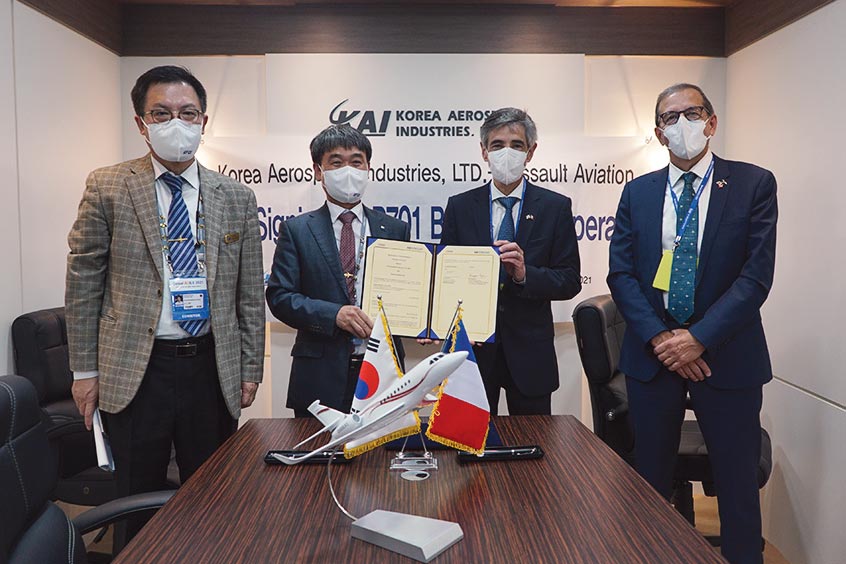 KAI signed an MOU for aircraft support and technical cooperation with Dassault at the recently held 'Seoul International Aerospace & Defense Exhibition 2021 (ADEX)' for smooth business promotion.