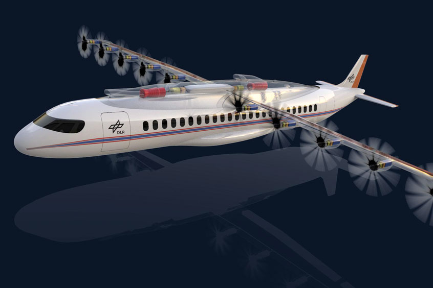 The development of climate-friendly technologies suitable for everyday use in the air transport system of the future is at the top of the list of priorities for the German Aerospace Center (Deutsches Zentrum fuer Luft- und Raumfahrt; DLR). Among other things, research efforts are focused on new aircraft configurations that can be successfully operated commercially with significantly lower emissions and reduced noise pollution. Electric or hybrid-electric propulsion systems have potential for aircraft configurations that meet these requirements.
