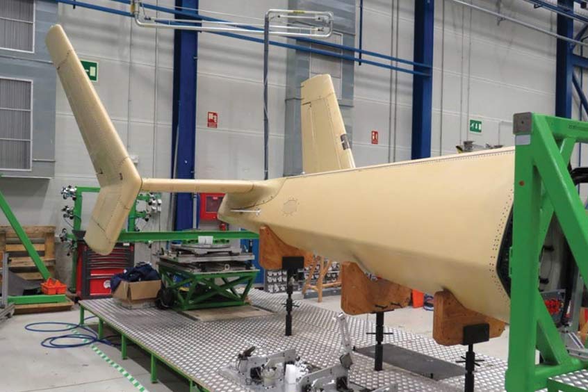 The rear fuselage of the Racer high-speed demonstrator, designed and produced by Spanish teams, is now ready for transfer to the Airbus Helicopters plant in southern France, where the final assembly is taking place. The flight campaign is scheduled for next year.
