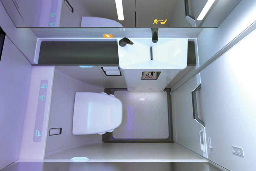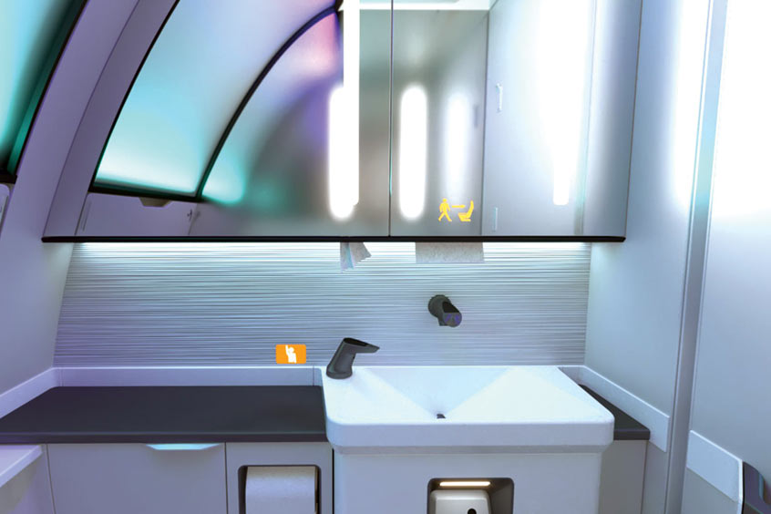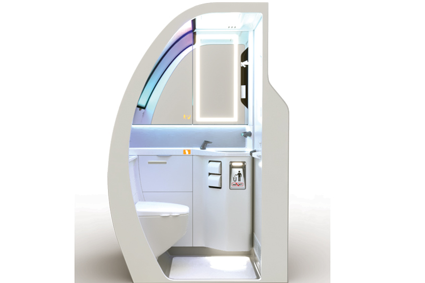 The new lavatory incorporates a modular design and customisation opportunities for trim, finish and lighting and includes touchless functionality, the latest micro-LED lighting technology and a centralised computing system to optimise the passenger experience, improve airline operability and help pave the way for future technology integration.
