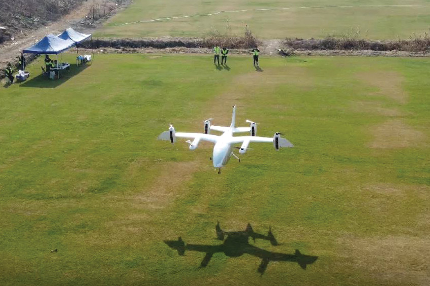 On December 30, 2021, Shidi's E20 aircraft made its maiden flight with a 50% scale-down verification aircraft. The E20 aircraft is a 50% scaled demonstration aircraft with a wingspan of 6 metres. The 50% scale-down demonstrator further restores the characteristics of the E20 in terms of aerodynamic shape, adding the configuration of flaps and variable-pitch rotors. The flight test will help correct the analysis results of the aerodynamic simulation, verify the control strategy of the flight control system, optimise the flight quality of the aircraft in the tilting corridor, and further improve our understanding of the prototype and promote the progress of research and development.