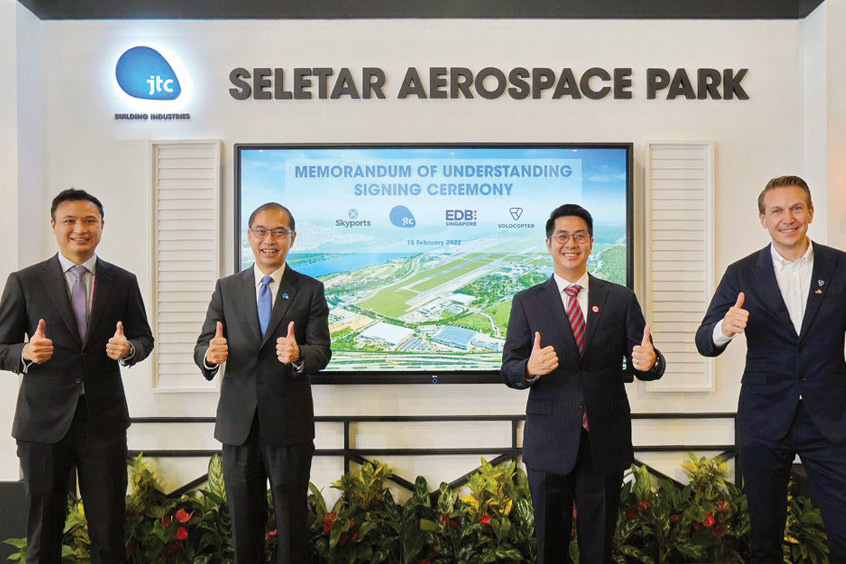 The MOU with urban air mobility pioneer Volocopter will study the feasibility of developing facilities and resources in Seletar Aerospace Park to carry out manufacturing and maintenance, repair, and overhaul (MRO) activities for electric vertical take-off and landing (eVTOL) aircraft.