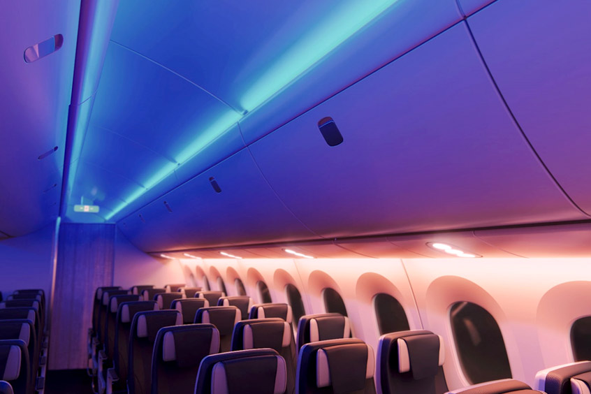 By increasing the number of colored LEDs used in traditional lighting systems, Hypergamut creates an improved lighting environment that harmonizes with a passenger's circadian rhythms, helping regulate the body's release of melatonin so travelers relax and fall asleep easier, even with the lights on. The enriched spectrum of light also helps the body awaken more naturally, minimizing the effects of jetlag upon arrival without altering the color, hue or quality of the light.