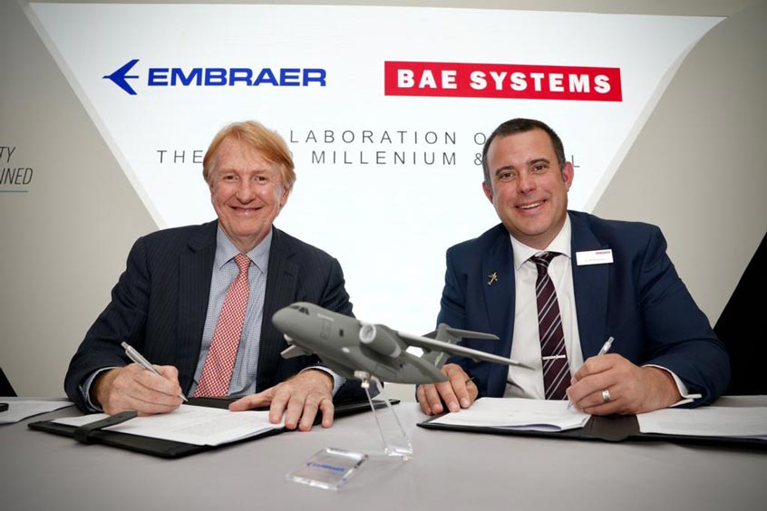 Embraer and BAE Systems today have announced at the Farnborough Airshow the signature of two memorandums of understanding (MoUs), which expand the footprint of both companies in the global defense market, by setting out the basis for a collaborative relationship.