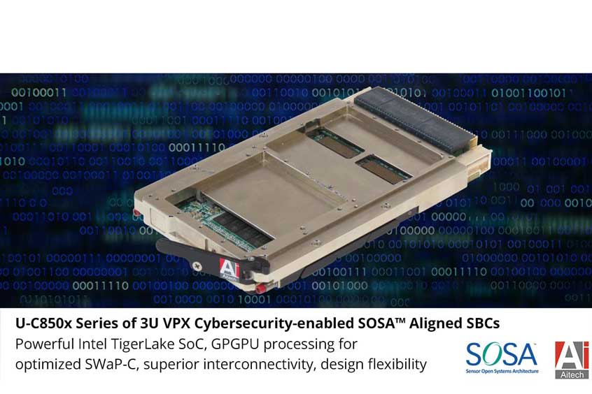 Aitech Systems, a leading provider of rugged boards and system level solutions for military, aerospace and space applications, now offers the U-C8500, U-C8501 and U-C8502, three new 3U VPX cybersecurity-enabled single board computers (SBCs) aligned to The Open Group Sensor Open Systems Architecture (SOSA) Technical Standard.