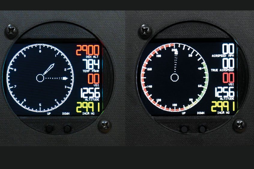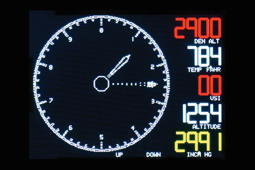 -Multi-Function Instrument, features Airspeed, Altimeter, Graphing Altimeter, VSI, Density Altitude, True Airspeed and Outside Air Temperature (OAT), with a brilliant and clear, deep black, high contrast display.