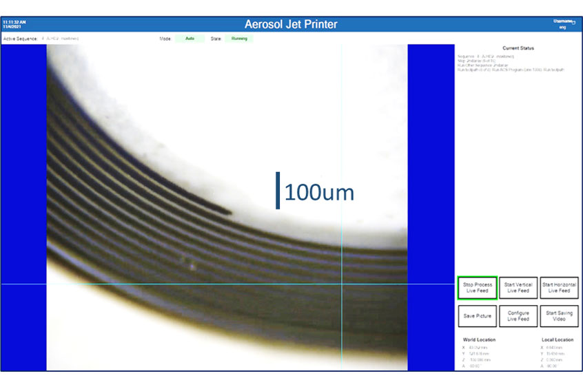 Optomec's Printed Electronics machines enable manufacturers to create extremely fine 3D electronic structures–such as circuits, sensors, antennas and interconnects–with features as small as 10 microns using nanoparticle inks. The machines are widely used in the Aerospace and Defense, Energy, Medical Device, Advanced Electronics Packaging and Research segments.