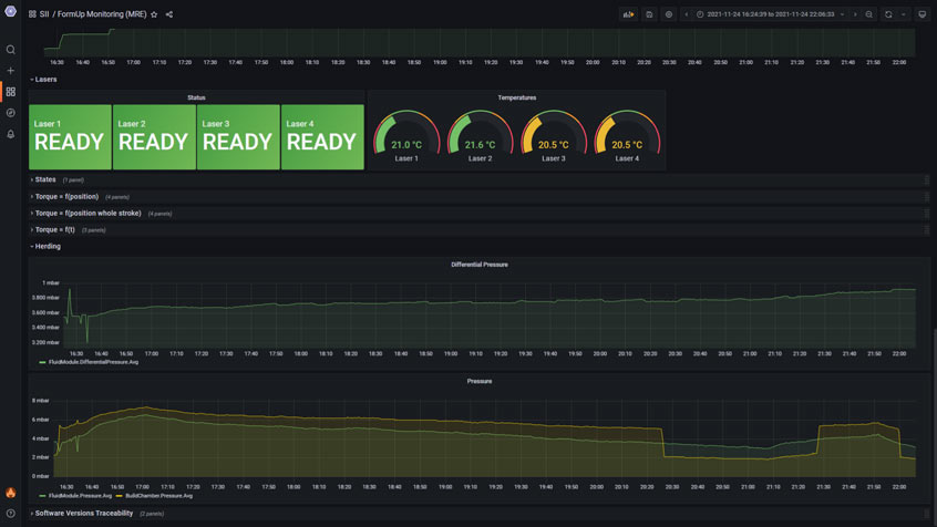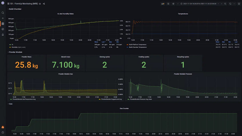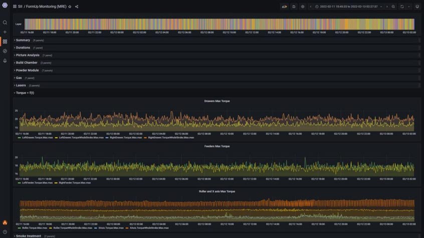 AddUp Dashboards is a multi-scale monitoring software that is available with all AddUp FormUp Powder Bed Fusion (PBF) and BeAM Directed Energy Deposition (DED) machines. The software provides a clear picture of both real time and historic process data for the machine and presents it in an easy-to-read dashboard view.