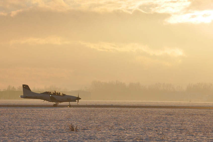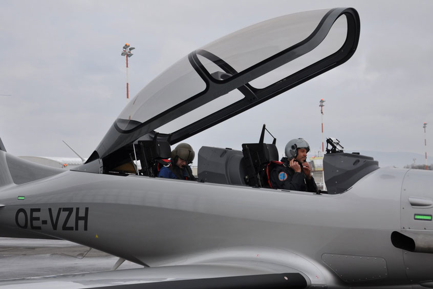 The flight was carried out by Ingmar Mayerbuch (test pilot) and Clemens Knappert (Chief Designer of CEA Design), who will assume the role of Flight Test Engineer took over. Both were extremely satisfied with the first results. The P01 is a turboprop training aircraft, which consists largely of Carbon fiber composites was made. It is a perfect new design and was completely developed by the experts of the relatively young company CEA Design GmbH based in Kottingbrunn (Austria) developed, manufactured and tested.