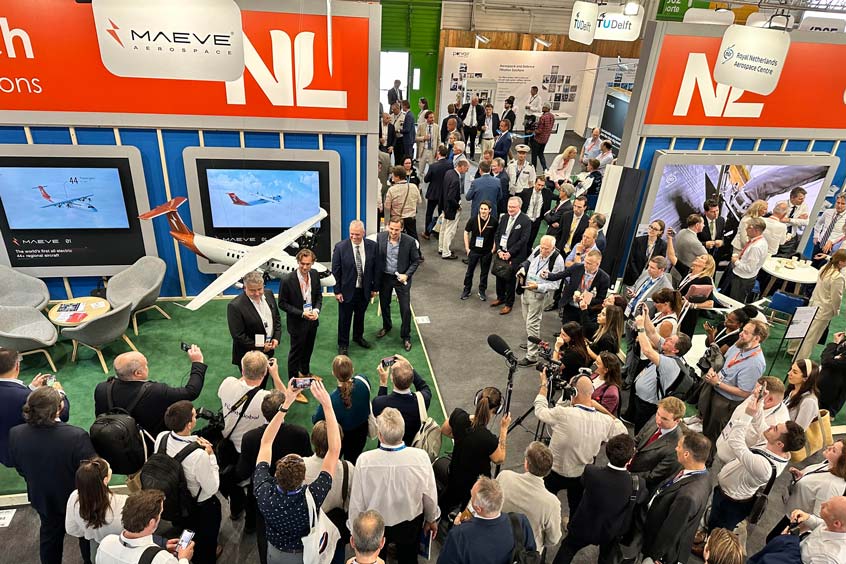 Maeve Aerospace made its first appearance at the Paris Air Show where their revamped design of the Maeve 01 was revealed with breakthrough specifications. Maeve's newly appointed CTO Martin Nüsseler revealed the design with Dale Tutt (VP Industry Strategies at Siemens Digital Industries) at the Dutch Pavilion.