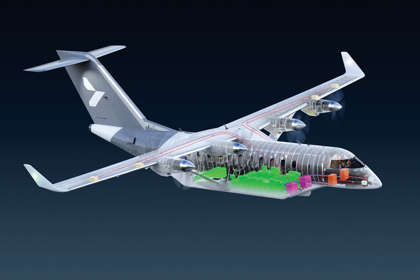 The ES-30 is a regional electric airplane with a standard seating capacity of 30 passengers driven by electric motors with battery derived energy. It will have a fully electric zero emissions range of 200 kilometers, an extended hybrid range of 400 kilometers with 30 passengers and flexibility to fly up to 800 kilometers with 25 passengers, all including typical airline reserves.