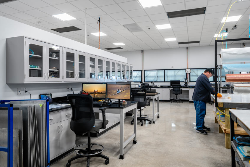 Cirrus Aircraft has provided significant investment to transform the 189,000-square-foot building on 39 acres into a state-of-the-art Innovation Center. Innovation Center capabilities include a larger and more capable Material and Processes Lab, a new Integration Test Lab, an upgraded Advanced Design & Development Lab, and new environmental equipment and testing capabilities as well as significant floor space increase for development and testing. Additionally, the Innovation Center features flexible and collaborative workspaces and amenities to provide an optimal team environment.