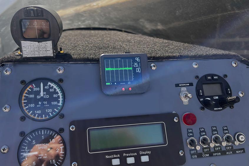 “A visualization of G force is useful and fun for any pilot, but is especially valuable for student pilots,” said James Wiebe, CEO of RADIANT Technology. “We did a market survey of various competitive products and could not find any with graphing and needle modes, especially at a reasonable price. Because this product is self-powered and attached using Velcro (or an optional holster), it can be used in any aircraft. I think users will love and use this product.”