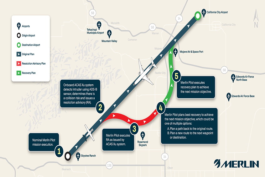 “Collision avoidance decision making systems are accepted by the FAA, and their outputs are critical to helping pilots and unmanned aircraft safely maneuver in the shared airspace. Integrating a next generation system like ACAS Xu with the Merlin Pilot enhances the safety of our system, while supporting the development of advanced automation capabilities to spur an autonomous future,” said Alex Naiman, Chief Technology Officer, Merlin.