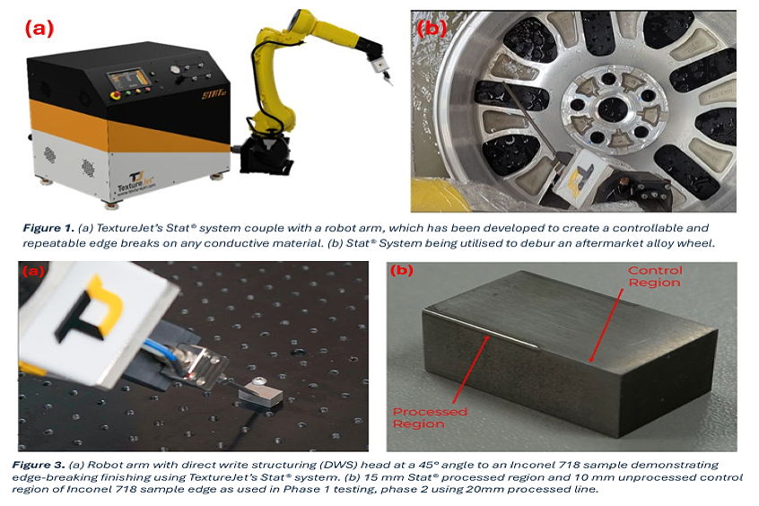 Edge finishing is a crucial step in manufacturing and the results of the work conducted clearly demonstrated that TextureJet’s Stat platform technology can controllably and repeatably generate edge break features in an automated fashion, with the ability to scale the size of the radius and the affected zone as required by the design intent and operational needs.