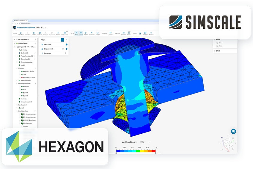 SimScale GmbH, a pioneer in cloud-native engineering simulation and Hexagon’s Manufacturing Intelligence division today announced a strategic partnership to transform how engineering teams deploy advanced structural analysis. The collaboration removes traditional accessibility barriers by delivering the advanced capabilities of Hexagon’s Marc nonlinear finite element solver as Software-as-a-Service (SaaS) through SimScale’s intuitive cloud native platform, unlocking unprecedented value for engineering teams.