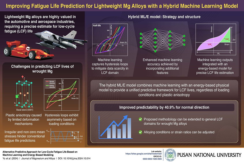 A team of researchers led by Professor Taekyung Lee from Pusan National University, South Korea along with Mr. Jinyeong Yu, a Ph. D candidate set out to tackle this challenge. In their study published in Journal of Magnesium Alloys, the group integrated machine learning with energy-based physical modeling to improve prediction accuracy. The model works by using a combination of a neural network that analyzes complex patterns in stress and strain cycles, along with an energy-based physical model that provides a more holistic understanding of material behavior under cyclic loading.