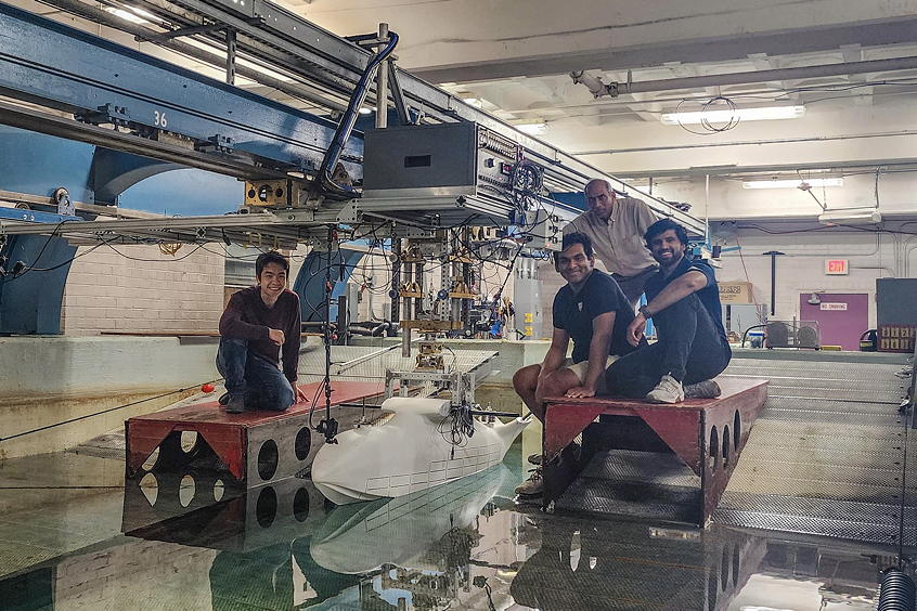 The towing tank testing conducted in collaboration with the Davidson Laboratory is a key milestone in Tidal Flight’s aircraft development. “Monohull seaplane design has not seen significant improvements since the 1950s,” said Mark Lau, Co-Founder and Chief Engineer at Tidal Flight. “We are seeking to modernize seaplane design using modern computational methods to reduce aerodynamic drag, enabling high fuel efficiency and range.” Towing tank testing is critical to the validation of computational methods since the high-speed planing regime during takeoff and landing is particularly challenging to analyze. Additionally, Krishnamurthy noted, “Underwater and overwater photography from towing tank testing has already provided critical insights on flow behavior and spray characteristics that are informing the next iteration of our hull design.” The initial towing tank test campaign completed in October provides valuable data that Tidal Flight is using to drive design iteration on the hull of their aircraft, with plans to return to the towing tank with an updated design in 2025 incorporating learnings from the initial testing.