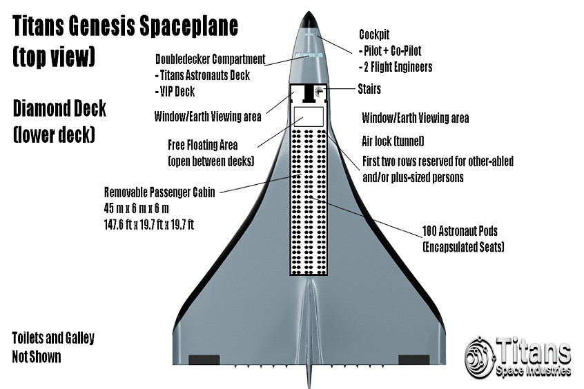 - At 330-350 person capacity, the Titans Spaceplane will be the largest space travel vehicle, capable of orbital and sub-orbital flights, starting at $149,000 per person.