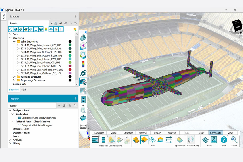 HyperX software automates stress analysis and design. It performs rapid structural sizing to all load cases, lightweighting and margin writing. The software also helps ensure the producibility of a composite part by creating a design that is optimized for manufacturability. It reduces schedule time by speeding up the engineering cycle and shortening the U.S. Federal Aviation Administration (FAA) and European Union Aviation Safety Agency (EASA) certification processes.