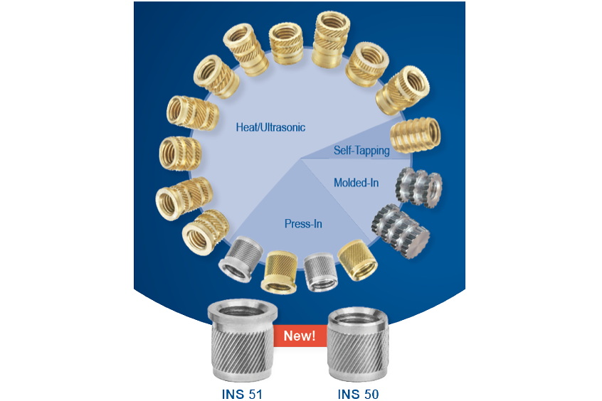 Spirol is pleased to introduce a range of 2024 aluminum Press-In Inserts. Available in symmetrical (Series INS 50) and headed (INS 51) versions, the new aluminum Press-In Inserts complements the existing brass line. Threaded Inserts are essential for reinforcing plastic components and provide a reusable thread within a bolted assembly. This ensures a proper seating torque and prevents the potential for plastic creep over time that could otherwise compromise the performance of the assembly.