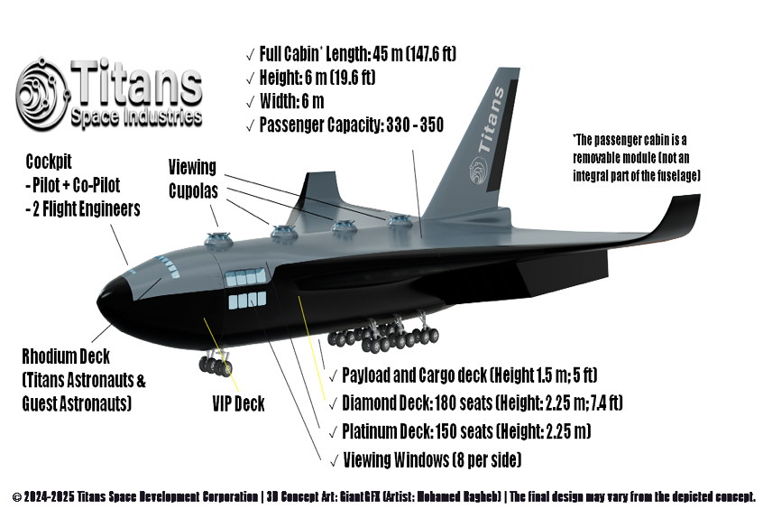 - The Titans Spaceplanes Can Be Custom Designed for Space Force One: Leveraging its expertise in advanced spaceplane design, TSI will custom-engineer "Space Force One" to the President's precise specifications. This bespoke design will prioritize security, comfort, and state-of-the-art communication capabilities, making it a truly unique presidential platform.