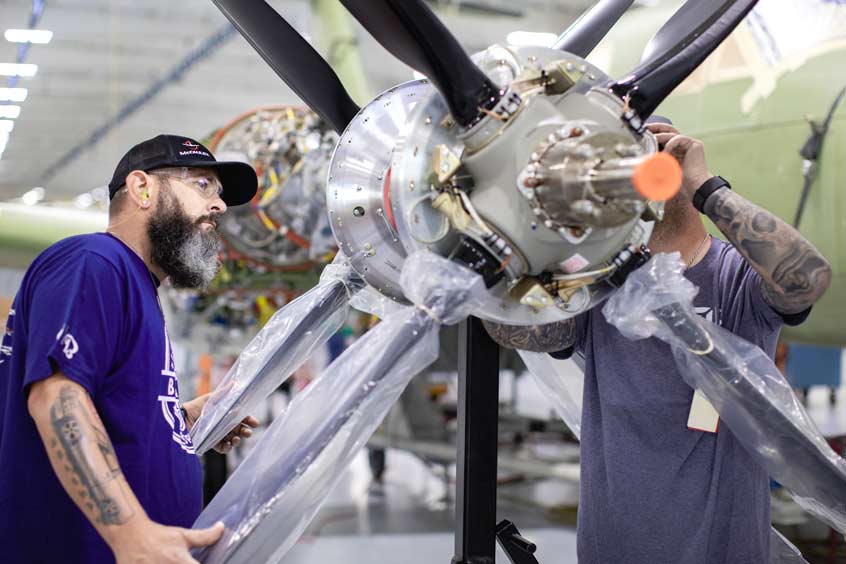 The C780 propeller, which entered service in 2023, features a lightweight scimitar blade design with four aluminum swept blades and a 105-inch diameter. The high-performance propeller provides King Air B300 owners and operators with several benefits to their aircraft, including:
