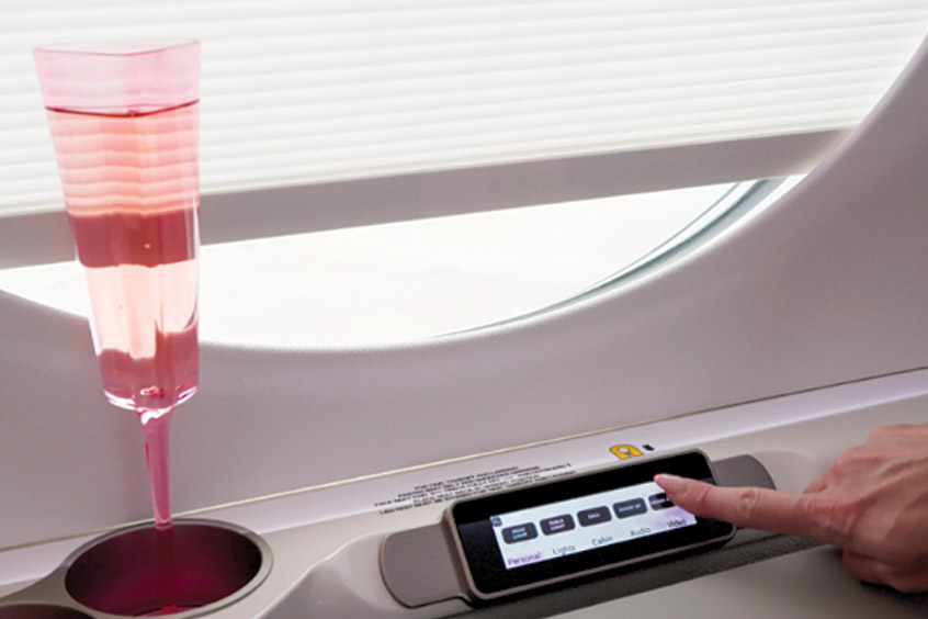 With the optional ShadePT feature, aerLuxe shades come equipped with an advanced preventive maintenance function which will extend the life of the fabric shade by refreshing it to original shape. ShapePT performs without requiring shade removal and can even be activated by cabin crew eliminating a maintenance ticket.