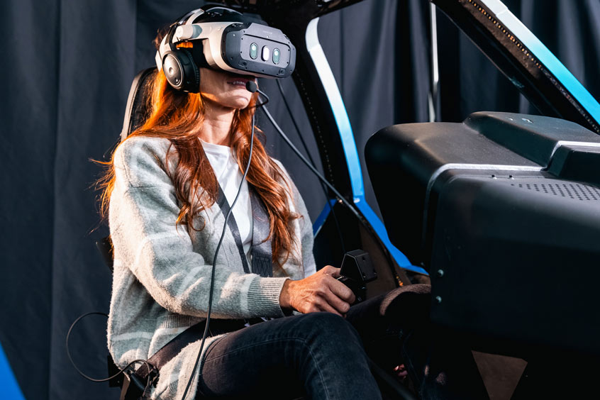 The Veris includes a fully electric six degrees-of-freedom motion base to produce accurate flight cues and vibrations. It also leverages the same flight data, software baselines and advanced technologies such as TRU’s REALFeel control loading system found in its Level FFSs, providing realistic flight control sensations and experience in a virtual world. Tactile cockpit panels allow the pilot to interact with the aircraft switches and avionics in a similar manner as they would in the aircraft. Finally, a VR headset replaces the traditional visual system, immersing the pilot into the flight environment.