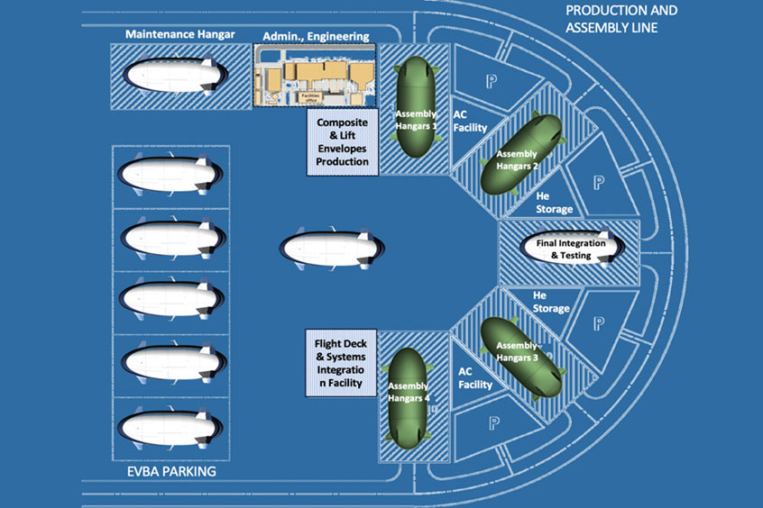 Aeros, a company developing state-of-the-art cargo airship, the Aeroscraft eVBA, initiates down selection of a general contractor for construction of its airship manufacturing facility. Earlier in February, Aeros started a competitive site selection process, choosing between proposals from seven states. The facility will be capable of delivering 36 eVBAs per year, bringing thousands of high-quality job positions and significant investment.