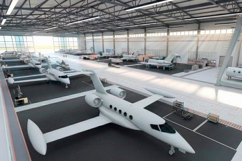 The study conducted by Porsche Consulting and Kardham Group defines the site’s operating model, energy needs, process flow, workstation design, and building layout. It outlines a complete aircraft manufacturing campus that includes: