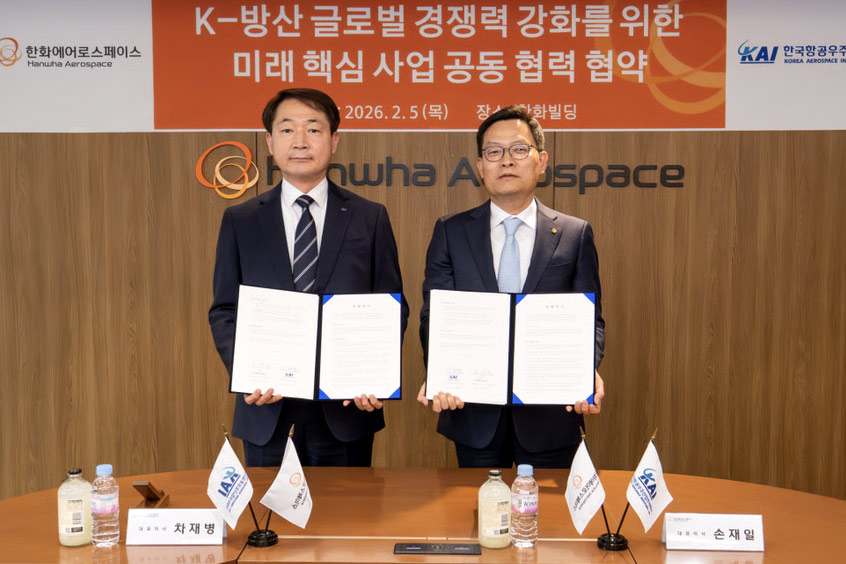 KAI (Korea Aerospace Industries, Ltd.) and Hanwha Aerospace have entered into a strategic partnership to strengthen the export competitiveness of the K-defense industry and develop the industrial ecosystem by establishing a mid- to long-term cooperative system in key future business areas.