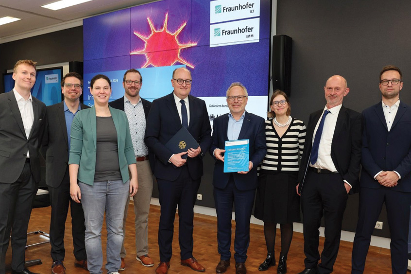 On February 10, 2026, Parliamentary State Secretary at the Federal Ministry of Research, Technology and Space (BMFTR) Matthias Hauer presented the funding approval for the InnoWaerm project to project leader Andreas Vogelpoth and his team at the Fraunhofer Institute for Laser Technology ILT in Aachen, Germany.